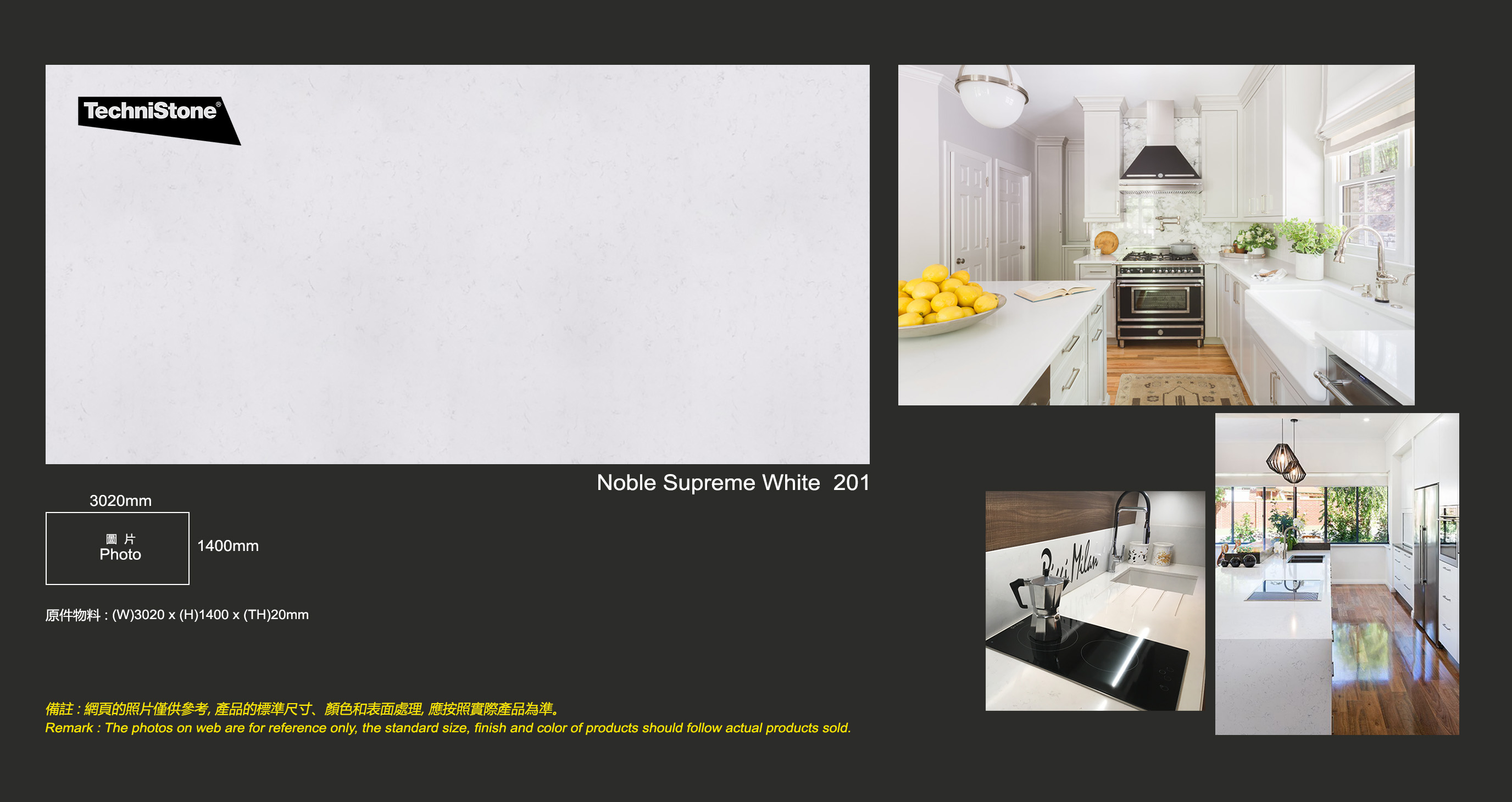 主頁石材製品(Stone)石英石TechniStoneNoble Supreme White 201Noble Supreme White 201