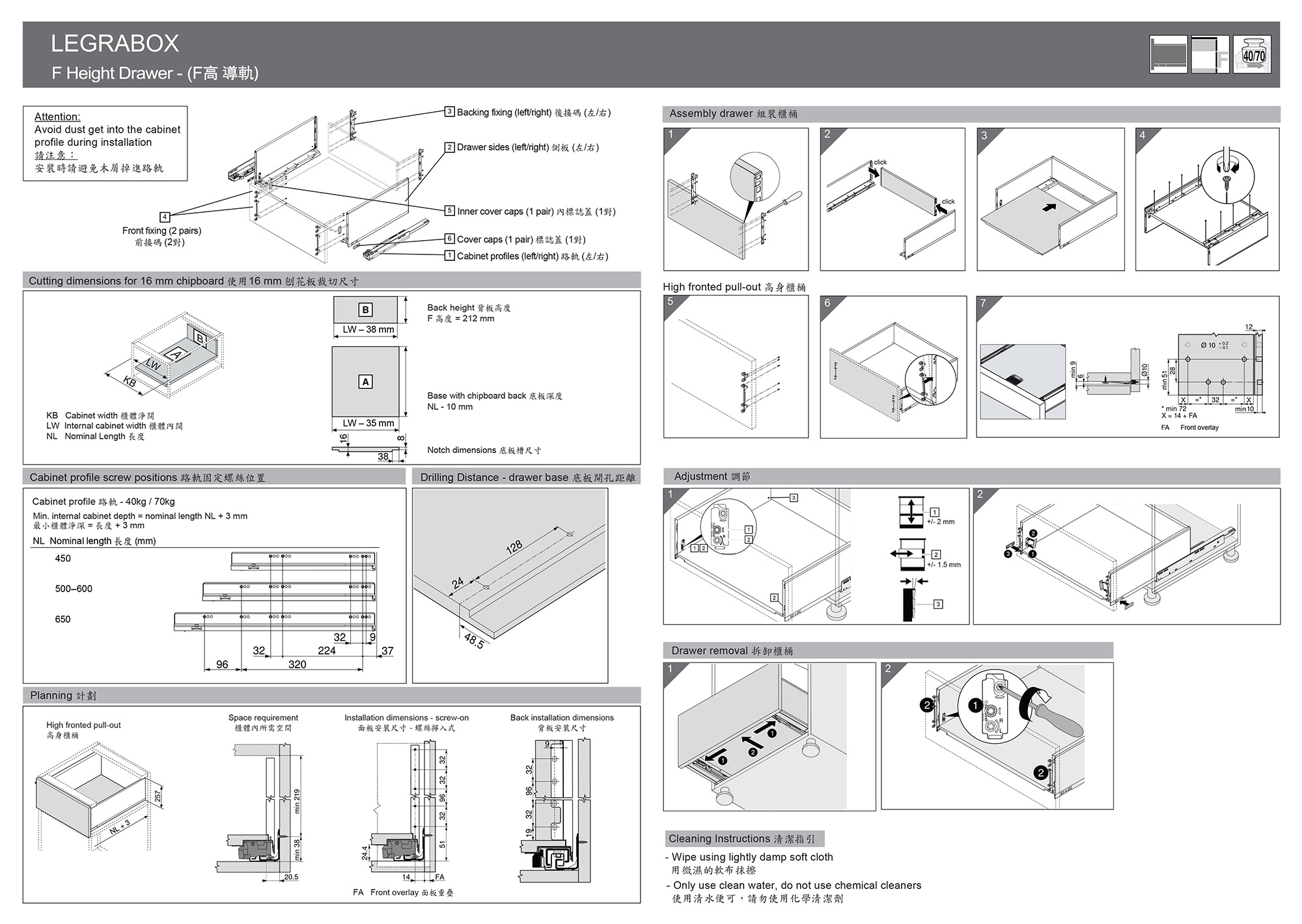 LEGRABOX 緩衝櫃桶趟路 (F高) - 500mm - F Height (70Kg)