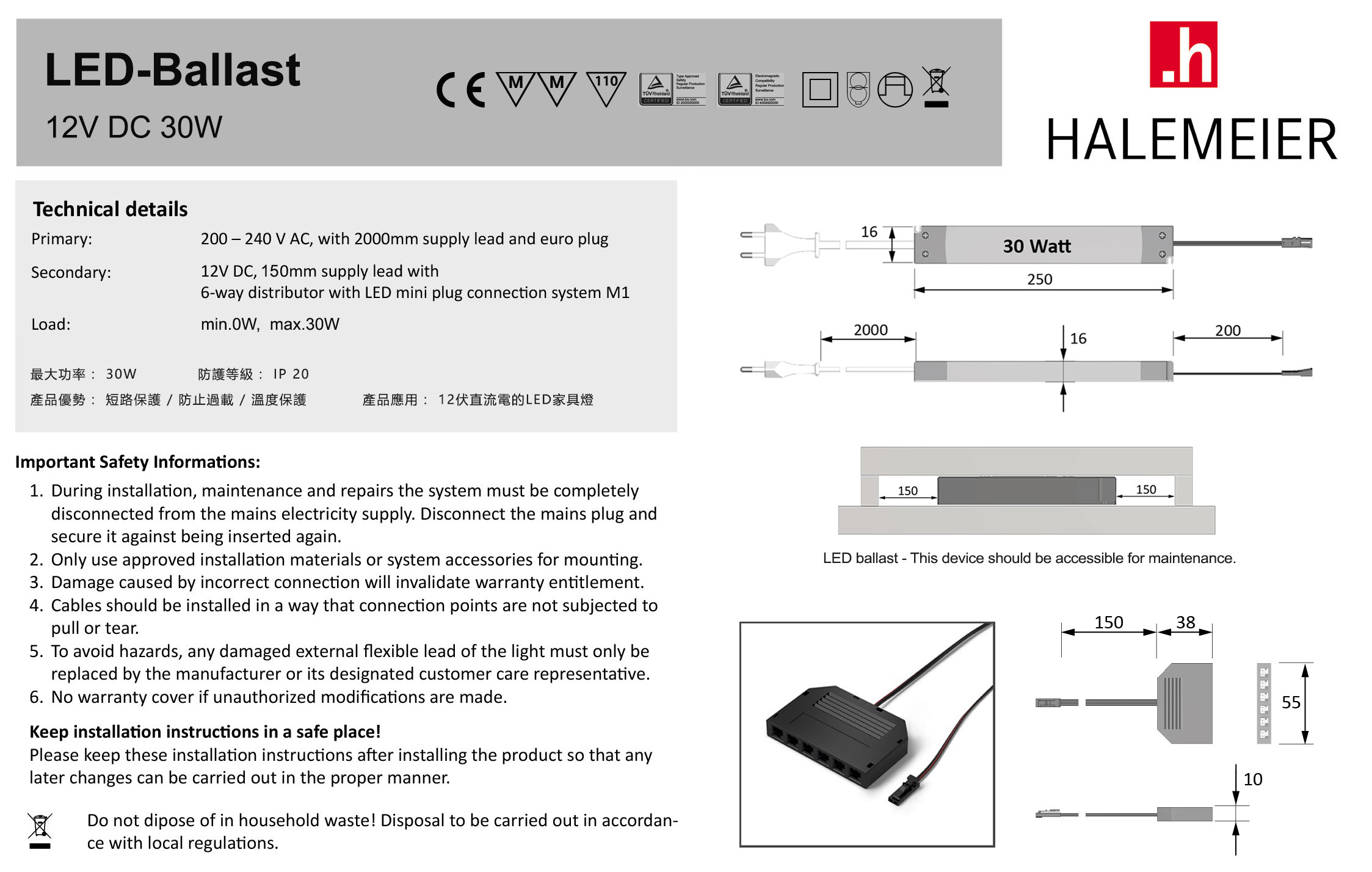 主頁燈飾(Lighting)LED 燈管L&SDERBY LED 燈管Halemeier 火牛 30W