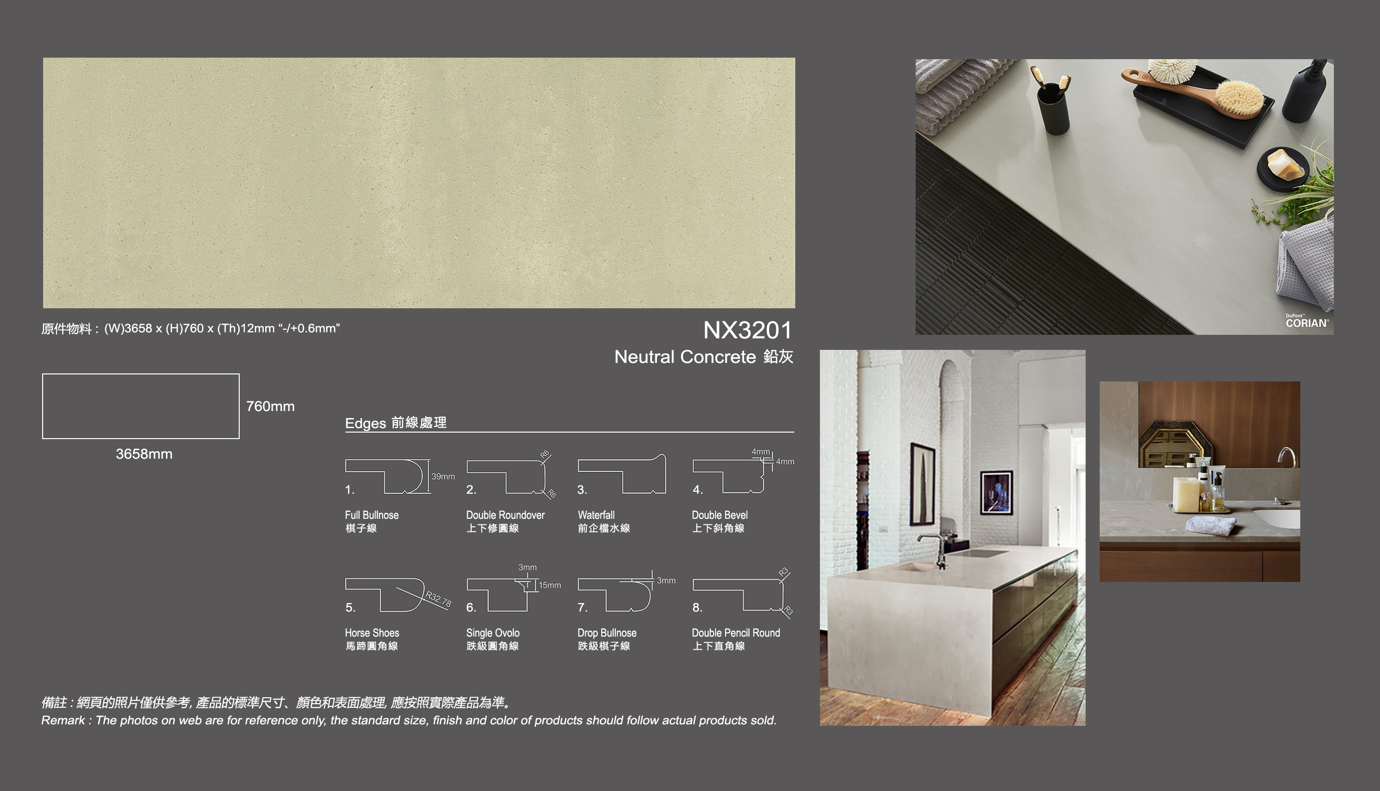主頁石材製品(Stone)無縫石Corian檯面石鉛灰 (礦石系列)