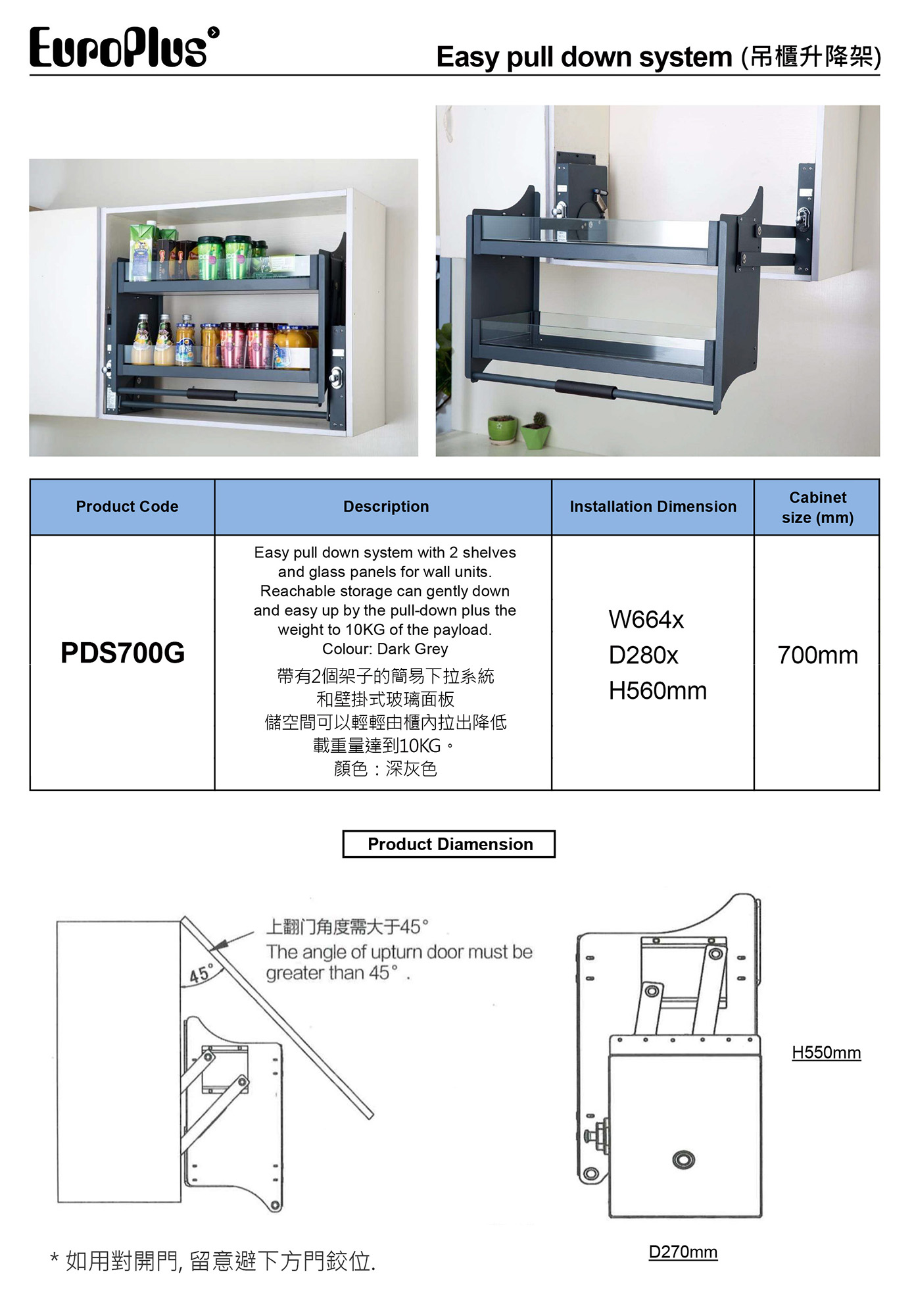 主頁五金配件(Hardware)吊櫃升降架EuroPlusPDS700G 升降架 - 700mm