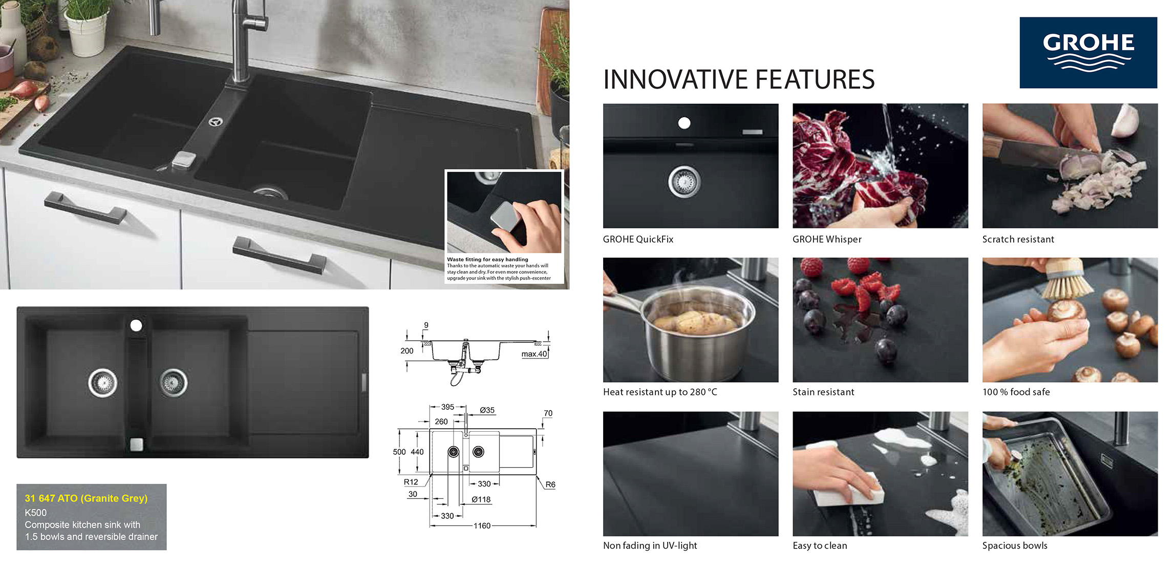 主頁鋅盆/水龍頭(Sink Faucet)花崗石-鋅盆Grohe31 647 (K500)雙鋅盆 31 647 (K500)