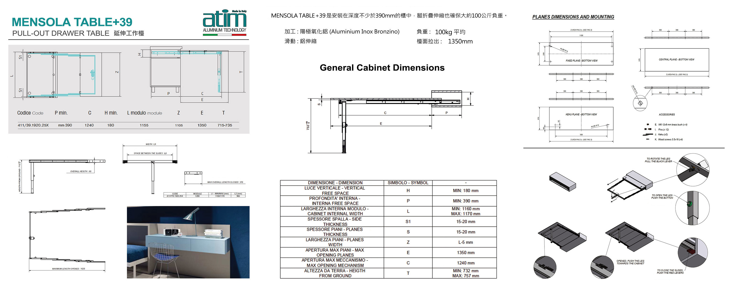 主頁五金配件(Hardware)伸縮枱ATIMMENSOLA T-ABLE+39伸縮檯