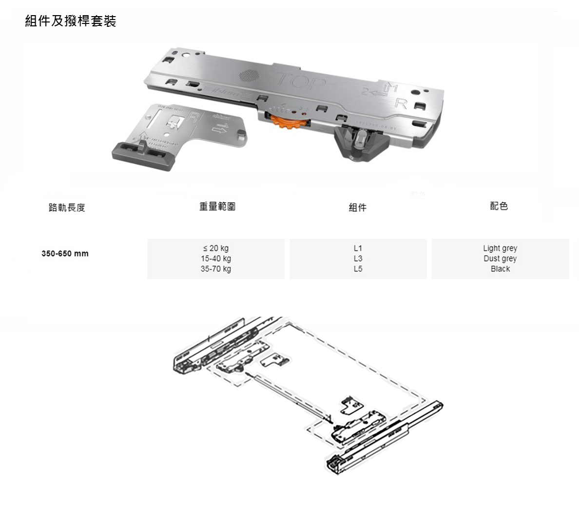 主頁五金配件(Hardware)櫃桶路軌"金屬"側板櫃桶路軌Tip On Blumotion (L3)