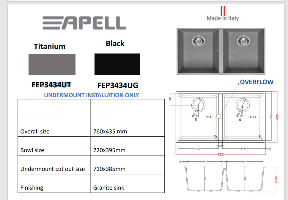 主頁鋅盆/水龍頭(Sink Faucet)花崗石-鋅盆APELLGranite sink雙鋅盆 FEP3434UT
