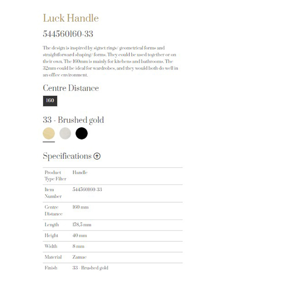主頁五金配件(Hardware)門板抽手FurnipartLuck Handle門板抽手(Luck Handle)