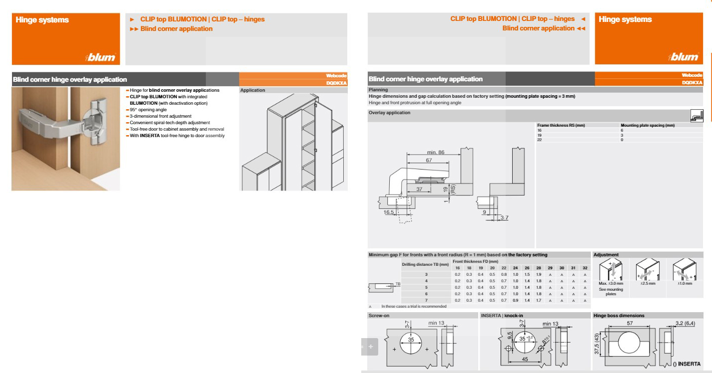 簡介: CLIP top BLUMOTION Blind Corner Hinge