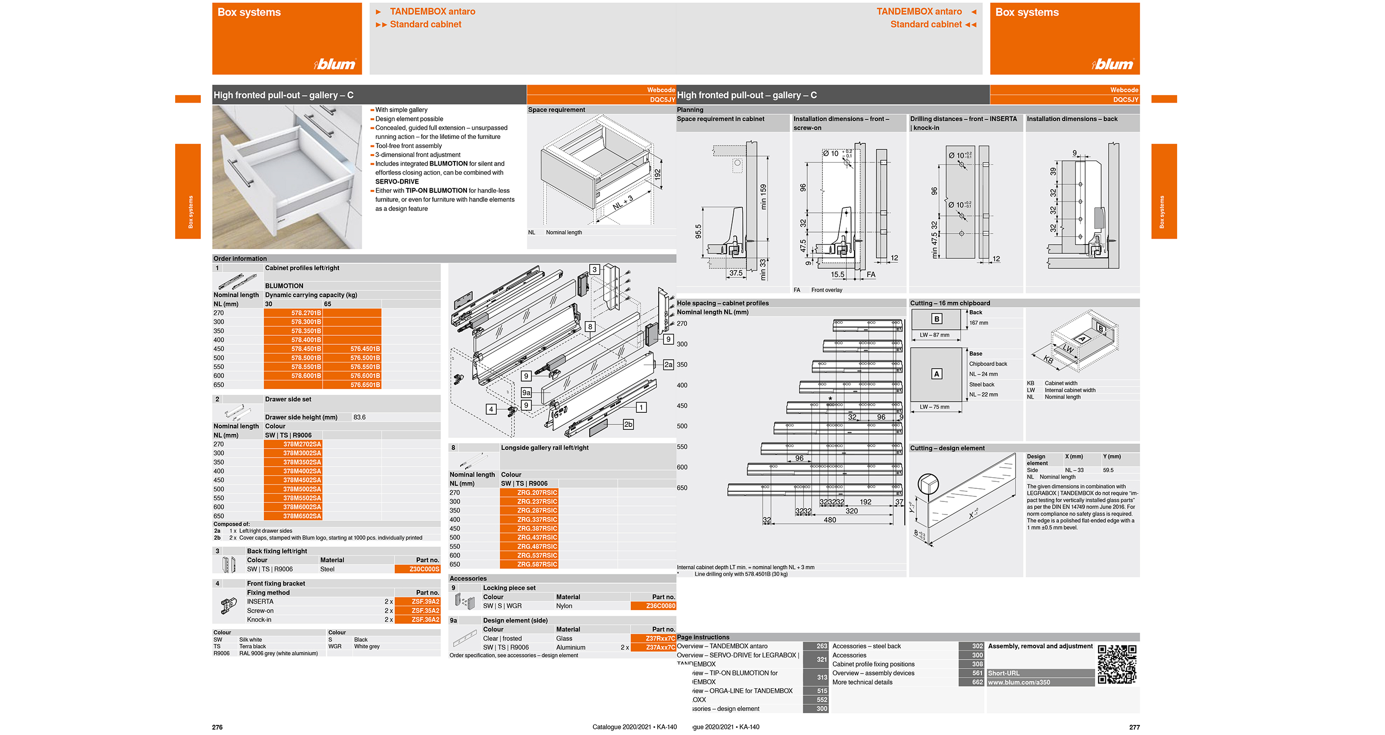 Antaro 緩衝櫃桶趟路 (C高-金屬側單杆) - 500mm - TANDEMBOX antaro C-H