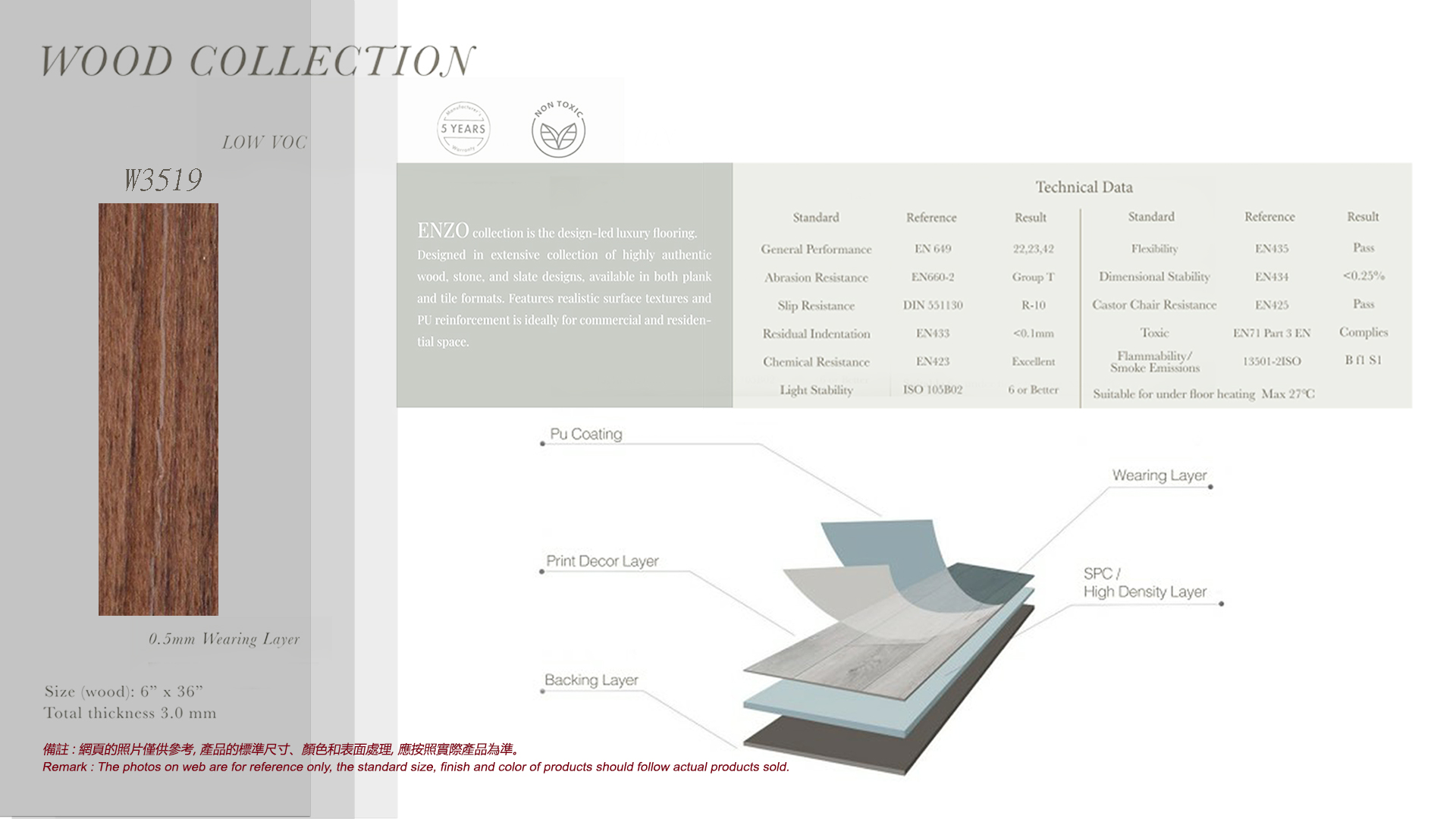 W3519 (LVT地板) - 耐磨層0.5mm (3.0mm厚軟身塑料)