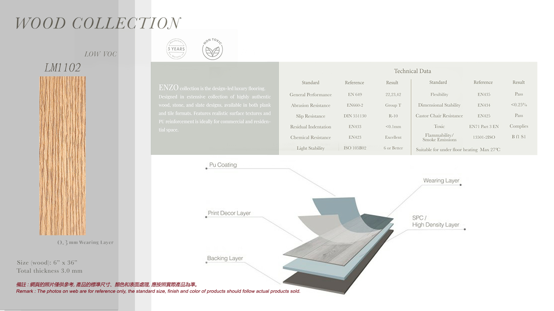 LM1102 (LVT地板) - 耐磨層0.3mm (3.0mm厚軟身塑料)
