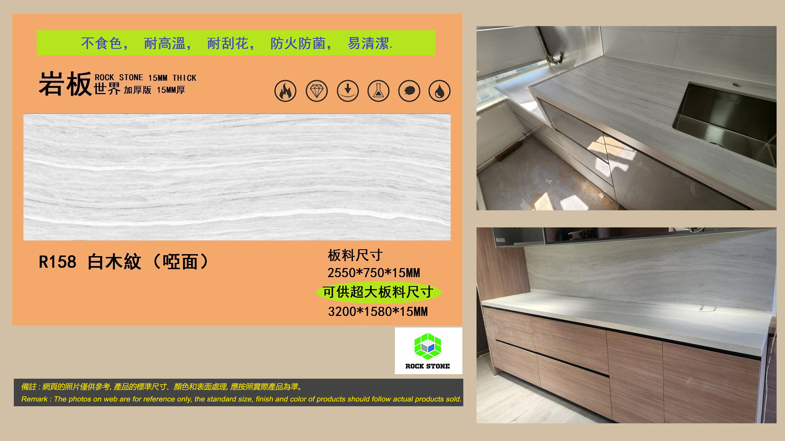 R158 白木紋岩板 - (啞面) - 15mm