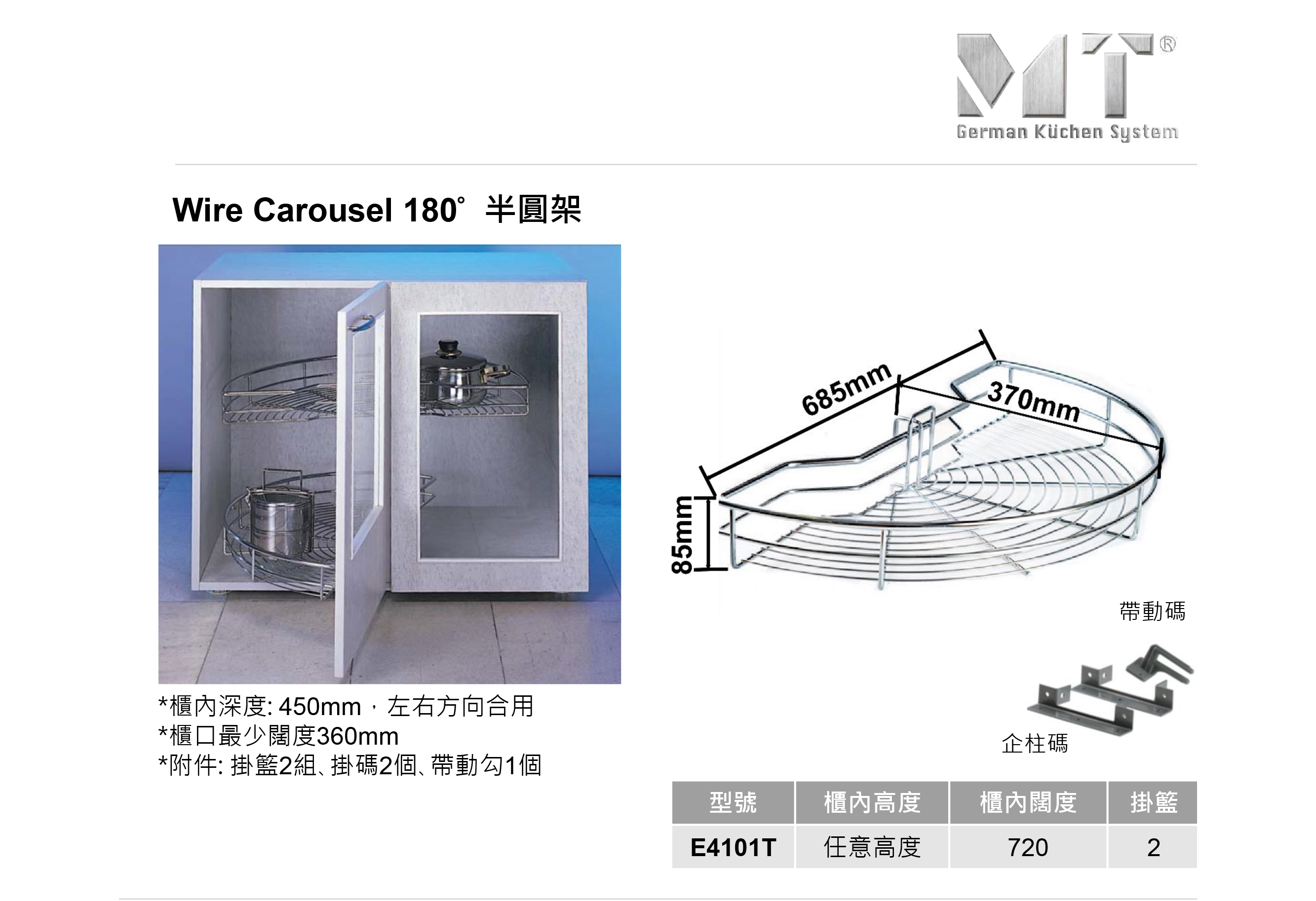 主頁五金配件(Hardware)拉趟架MT German Kuchen地櫃角位180°轉籃180°地櫃半圓籃E4101T