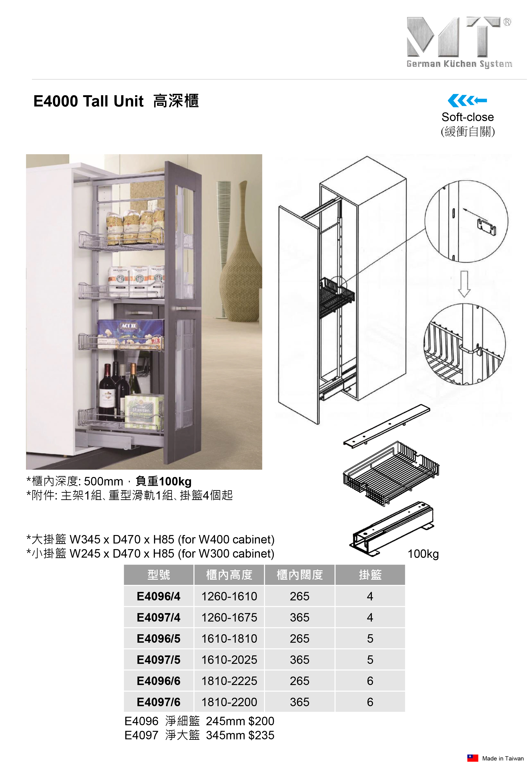 主頁五金配件(Hardware)拉趟架MT German Kuchen高身拉籃高身拉籃 E4096/4