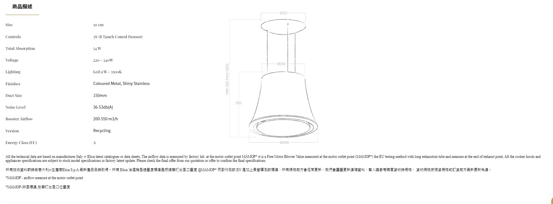 主頁電器(Appliances)油 煙 機Elica懸掛式Audrey