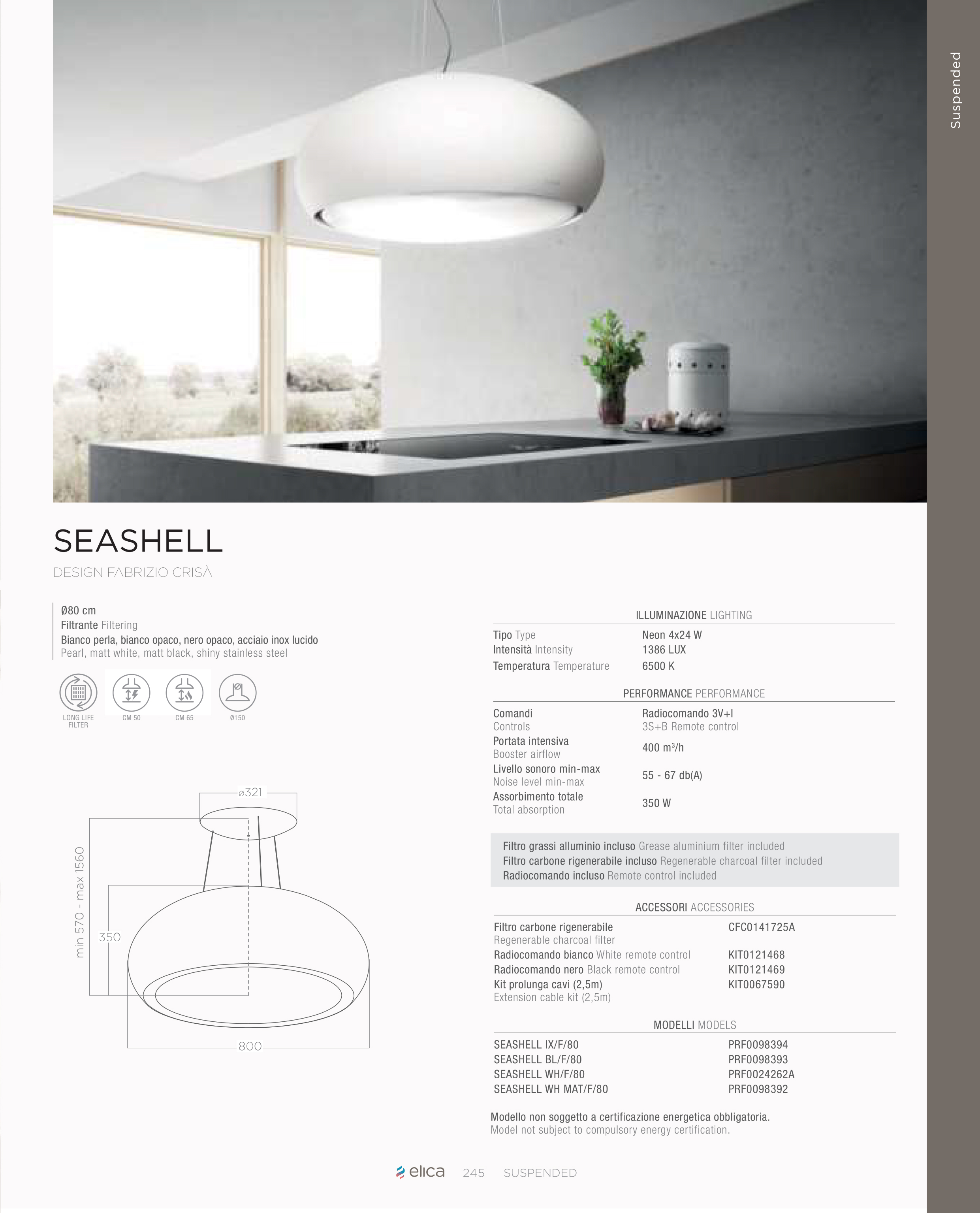 主頁電器(Appliances)油 煙 機Elica懸掛式SeashellSeashell (Pearl Gloss White)