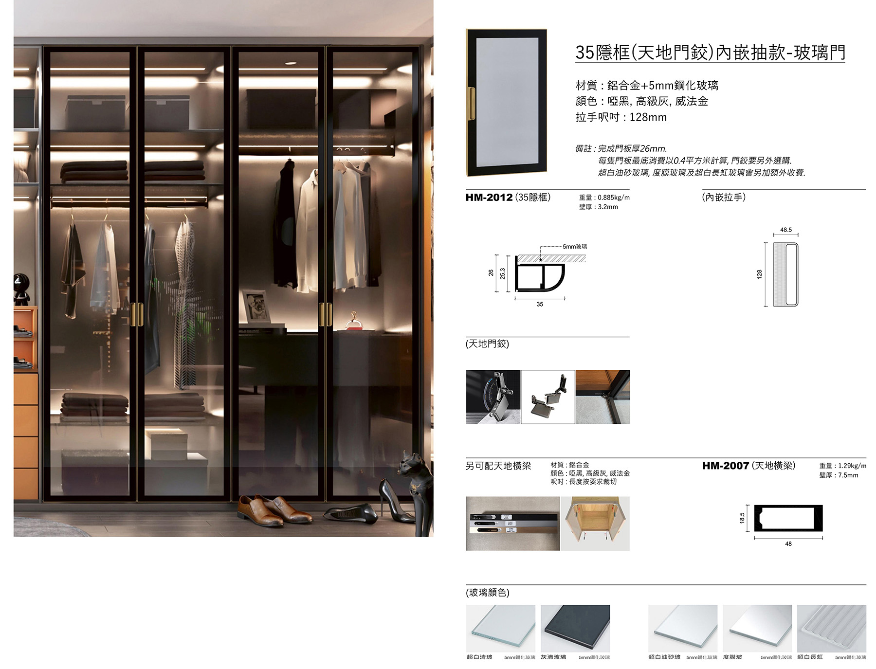 主頁飾面物料(Finishing)傢具門板鋁框玻璃門Besser35隱框(天地鉸)暗抽-玻璃門