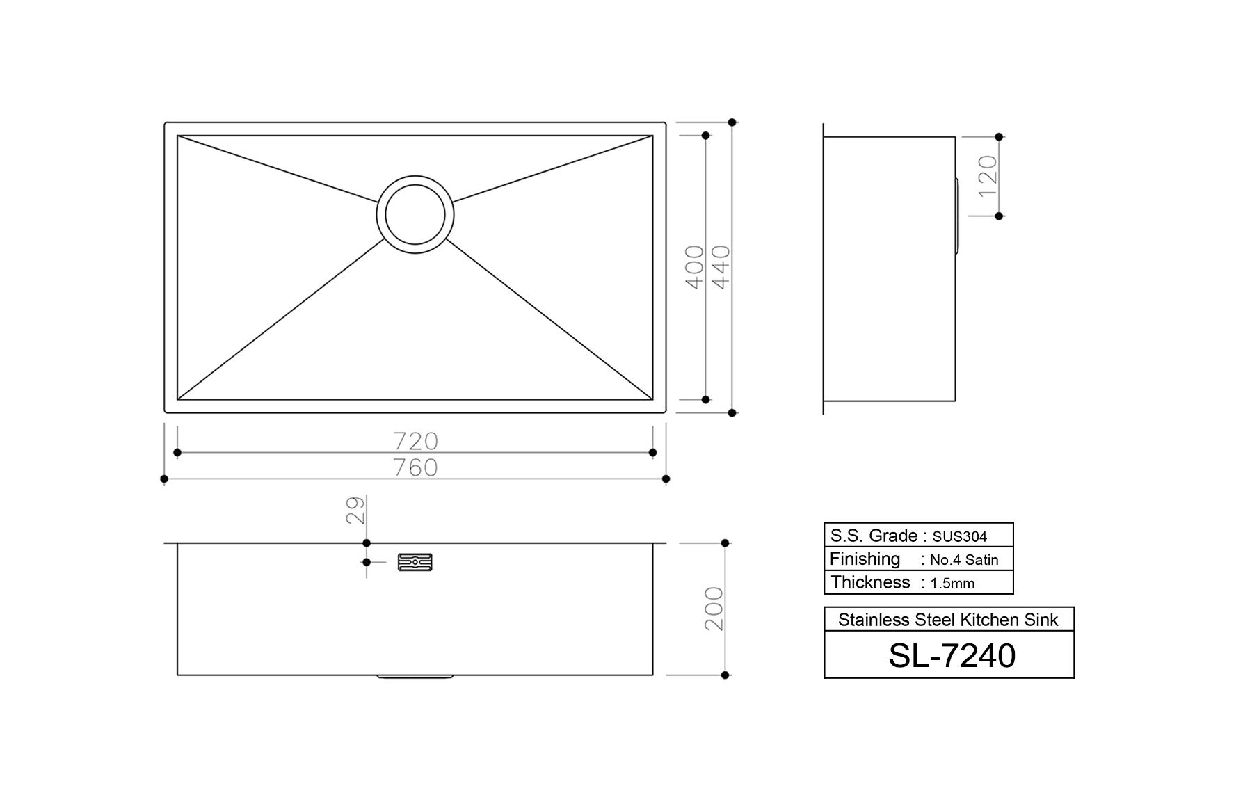 主頁鋅盆/水龍頭(Sink Faucet)不銹鋼-鋅盆TOPAZ方角鋅盆單鋅盆 (方角) SL-7240