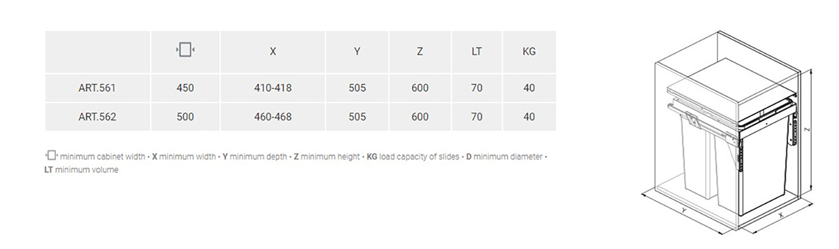 內置垃圾桶 (70L) - 500mm櫃用 / 塑膠 / 配緩衝路軌