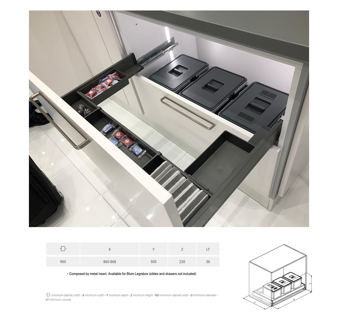 鋅盤底垃圾桶(36L)-不包路軌 - 900mm櫃用 / 塑膠 / 不包路軌
