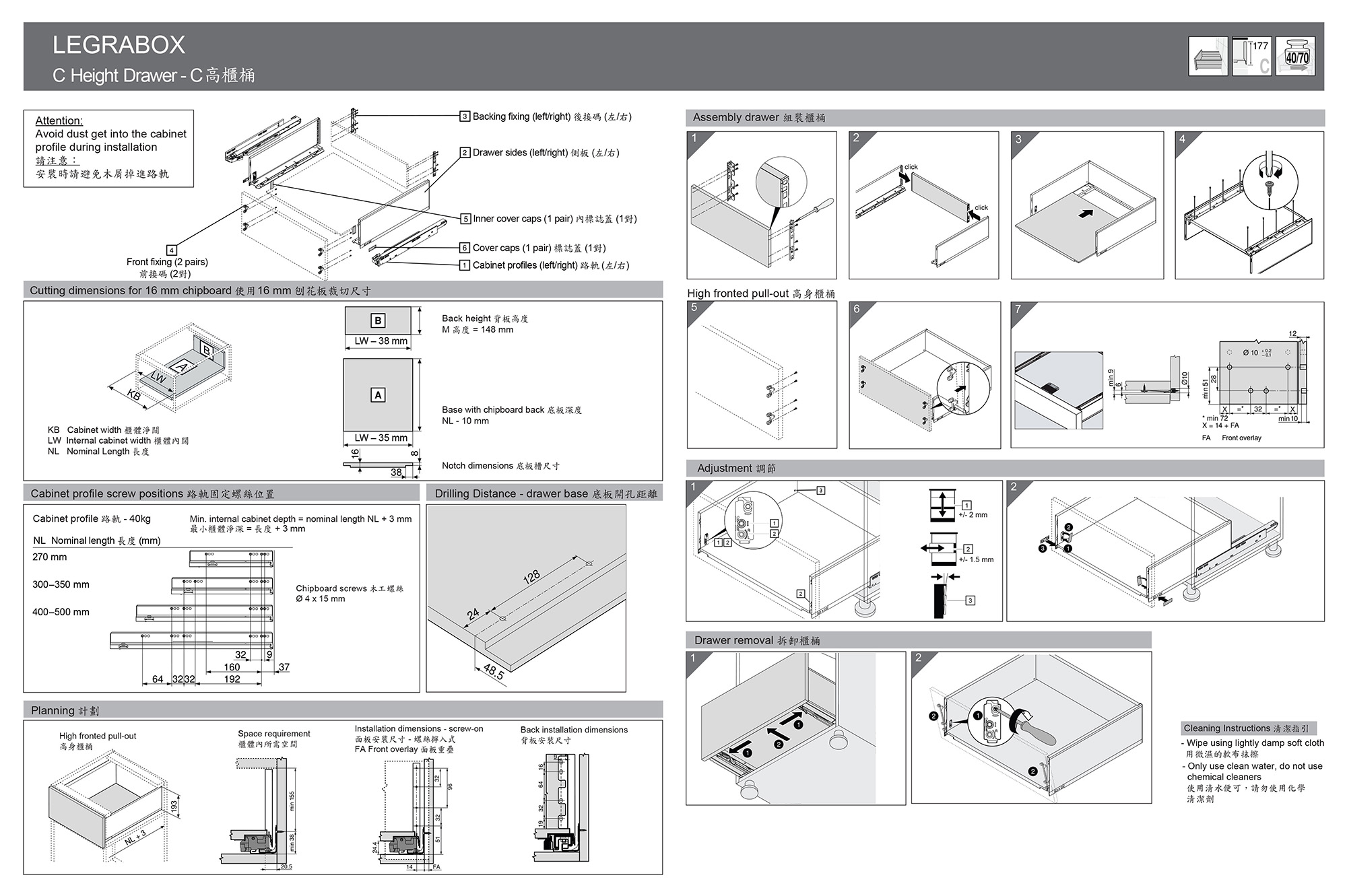 LEGRABOX 緩衝櫃桶趟路 (C高) - 500mm - C Height (70Kg)