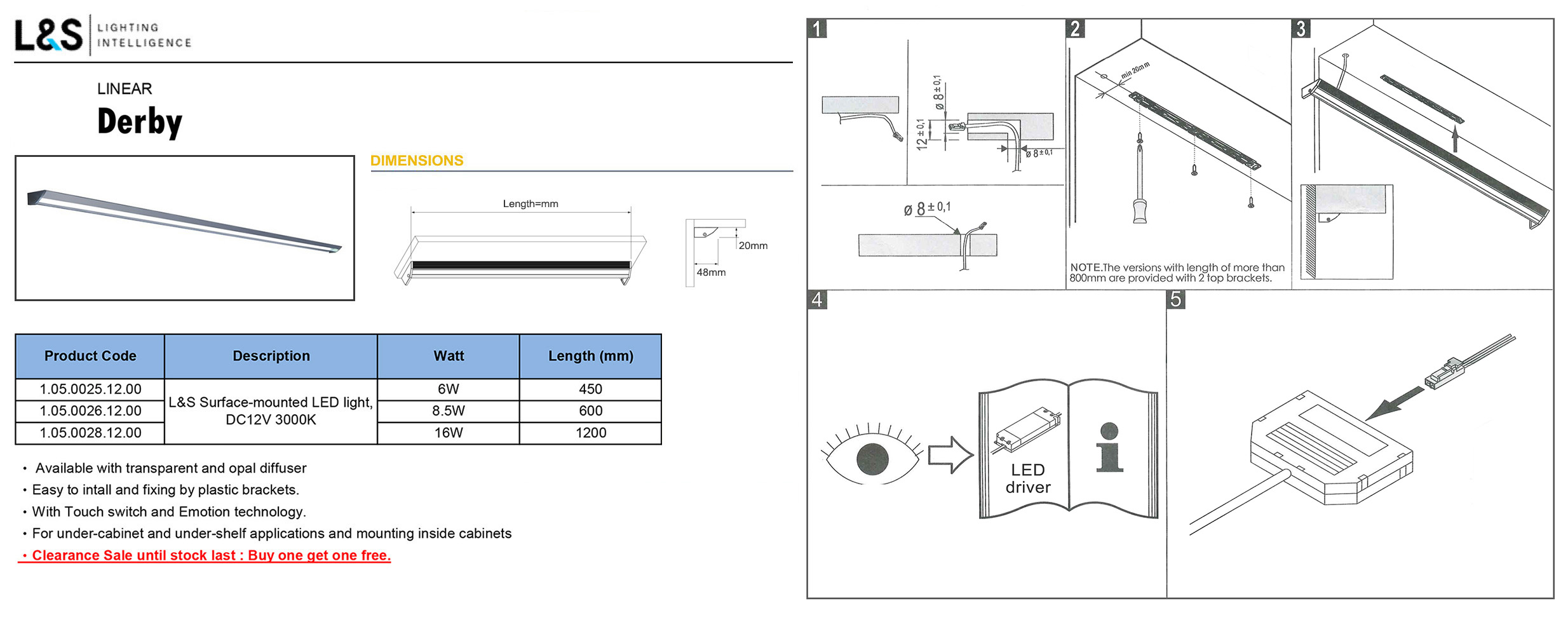 主頁燈飾(Lighting)LED 燈管L&SDERBY LED 燈管DERBY LED 燈管 (450mm)